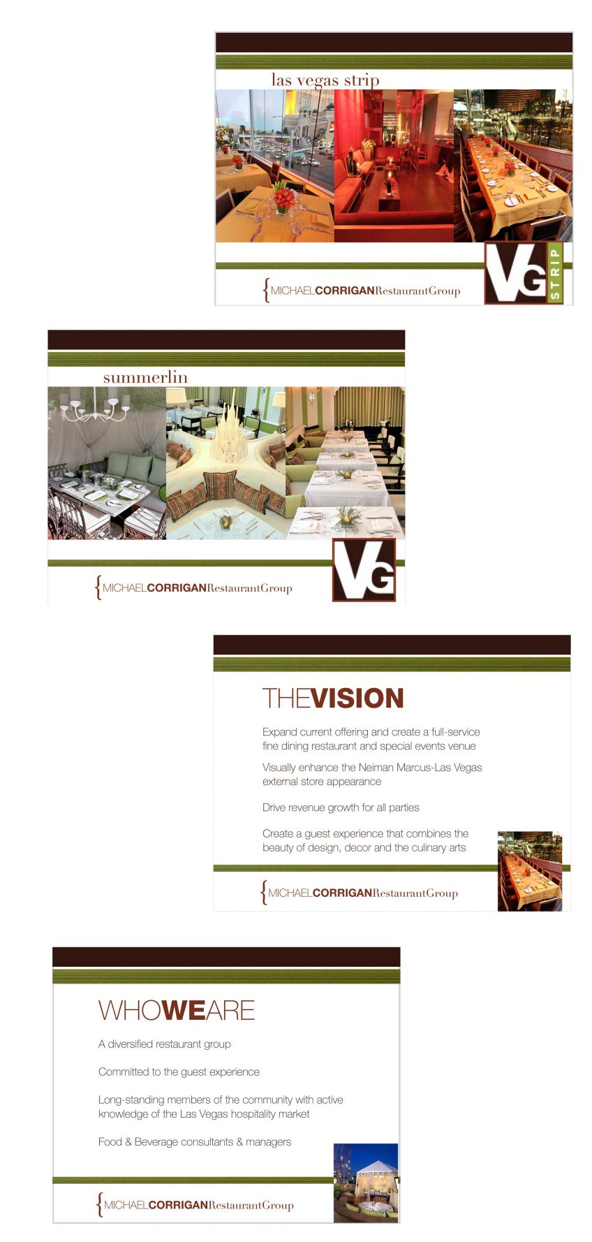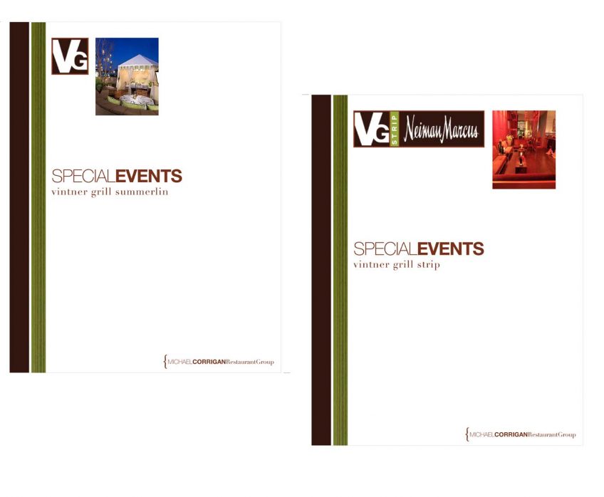Vitner Grill is an award winning restaurant located in the master planned community of Summerlin in Las Vegas. The restaurant is set apart by an idea of ‘everyday opulence’ and its dedication to design in additional to their fine food and impressive wine list. VG asked Kendra to help design concepts for the rebranding of their special events collateral for their space on the Las Vegas strip as well as their restaurant in Summerlin. The design needed to be translated to PowerPoints/Keynote presentations, digital packets and catering materials.